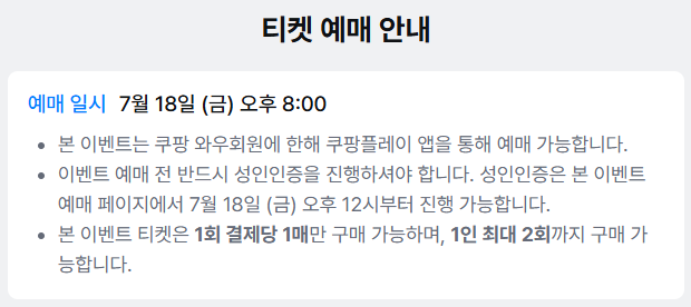 - 쿠팡 와우회원만 예매 가능