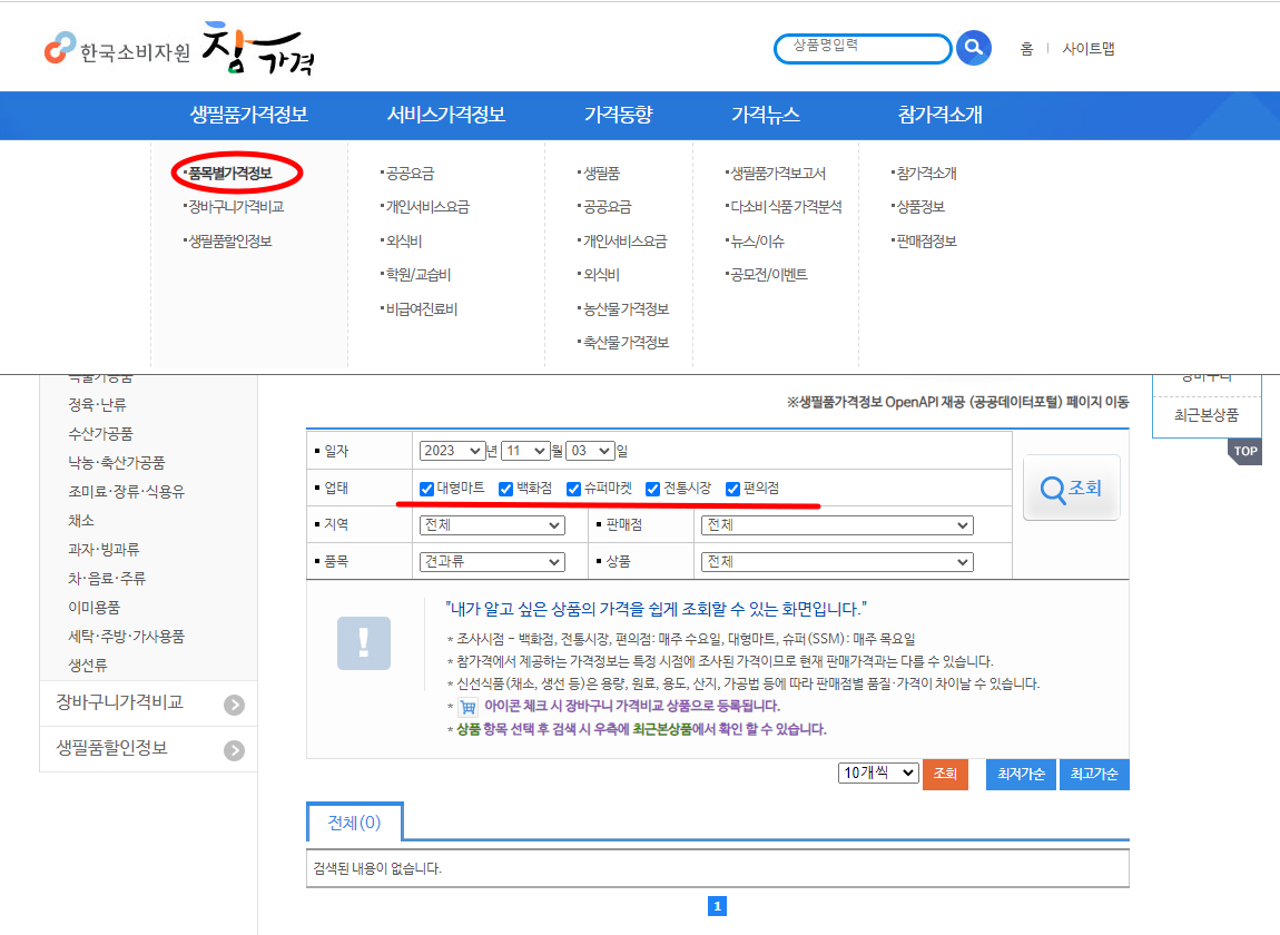 요즘 마트나 시장을 가보면 고물가로 인해 장보기가 두려운 시대인데, 이럴 때 한국소비자원의 가격정보 종합 포털사이트 ‘참가격’을 이용해 보시길 바랍니다. 우리 동네에서 가장 저렴한 매장을 한눈에 확인할 수 있어 장보기에 조금이나마 도움이 될 것이라 예상됩니다.