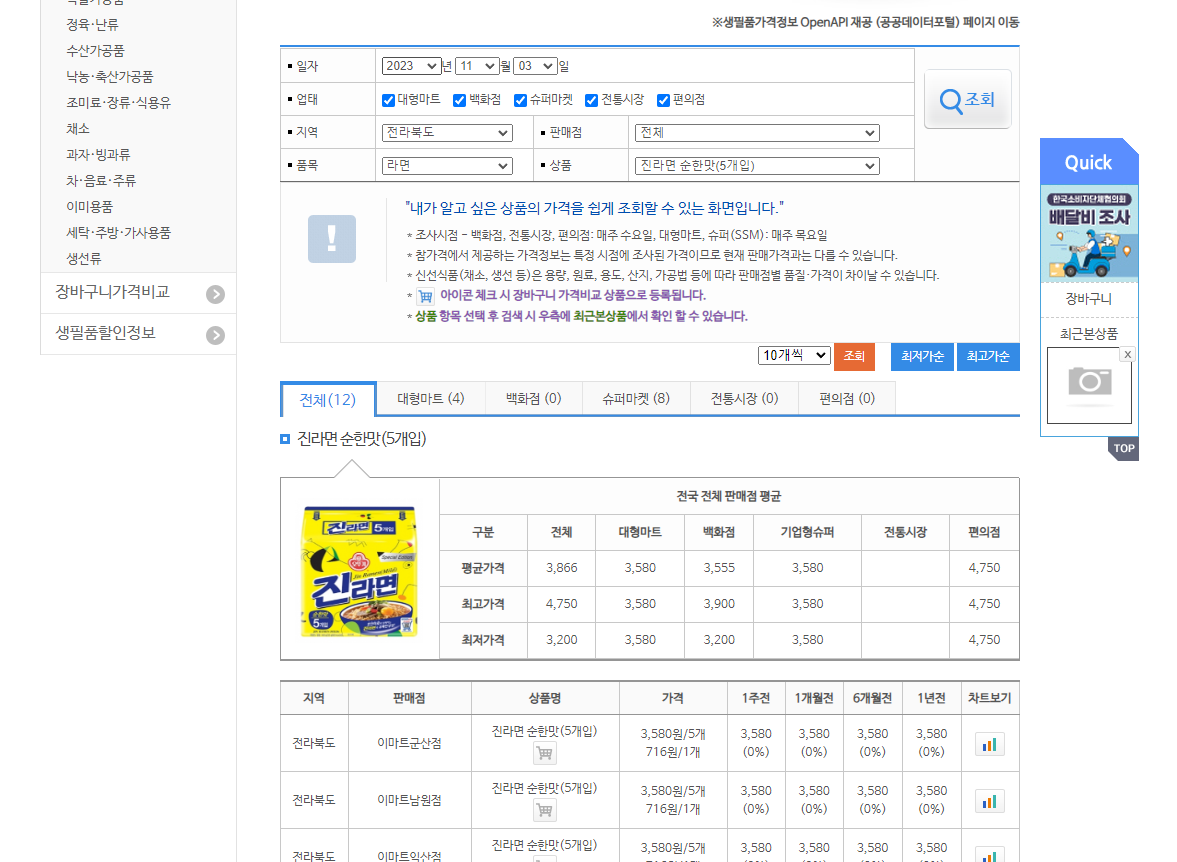 요즘 정말 물가도 높아지고, 가격 대비 중량도 낮아져서 가계 운영이 힘든 시기인데 참가격에서 물가파악 등을 통해서 가계운영에 도움 되는 정보를 알아가시는 것도 좋으실 듯합니다.