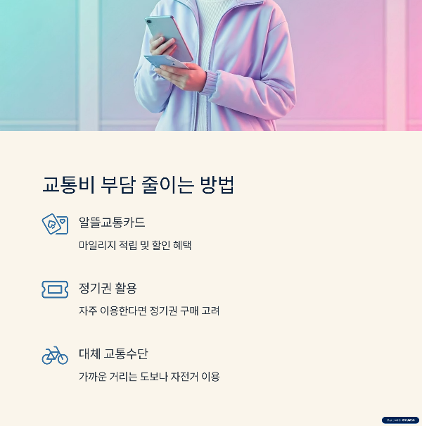• 가까운 거리는 도보나 자전거를 이용하는 것도 교통비를 아끼고 건강도 챙길 수 있는 방법입니다.