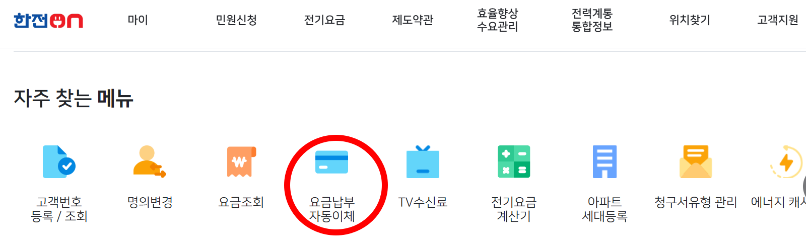 3. ‘자동이체 신청’ 또는 ‘자동납부 신청’ 항목을 클릭합니다.