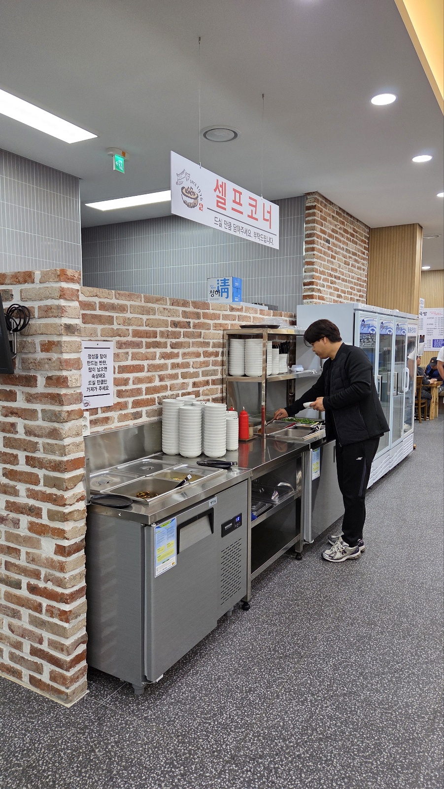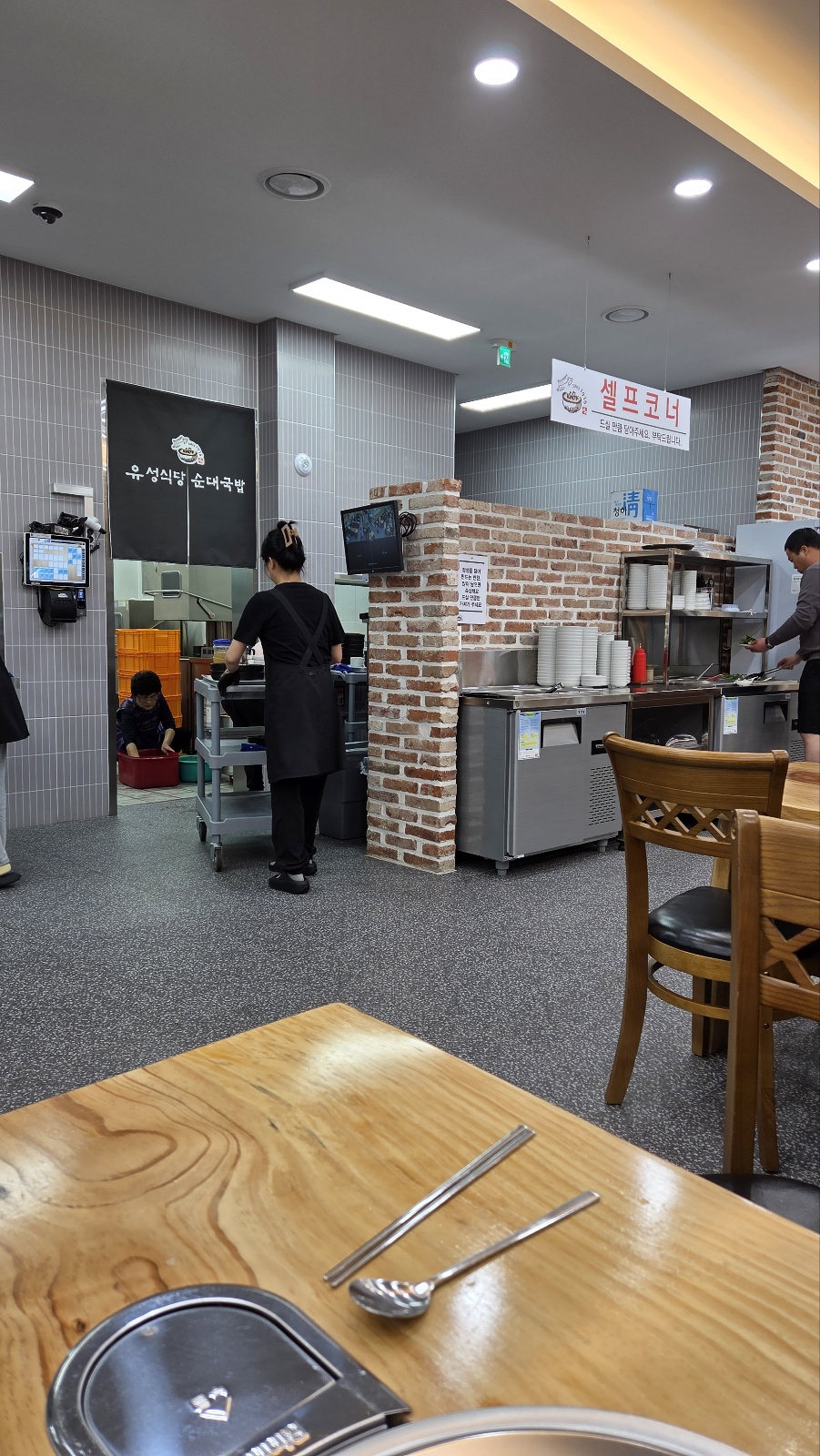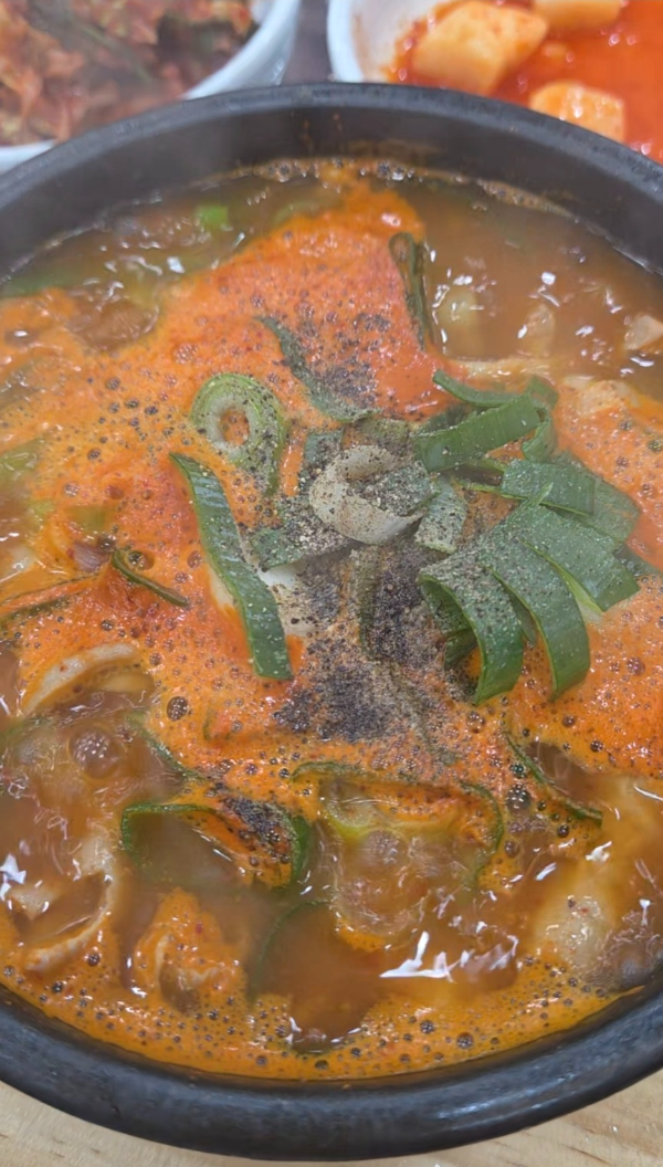 내부는 깔끔하고 넓으며, 테이블 간 간격도 넉넉해 편안한 식사가 가능합니다. 직원들도 친절하며, 기본 반찬을 주시며 셀프코너가 있어 부족하시면 가져다 드시면 됩니다. 기본적으로 김기, 깍두기, 고추, 마늘, 부추, 새우젓이 나옵니다. 무엇보다 김치가 맛있습니다!!! 👍👍
