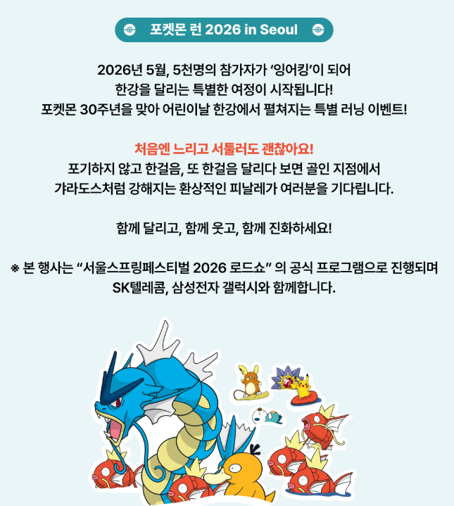바로 포켓몬스터 30주년을 기념하는 '포켓몬 런 2026 인 서울(Pokemon Run 2026 in Seoul)'입니다.