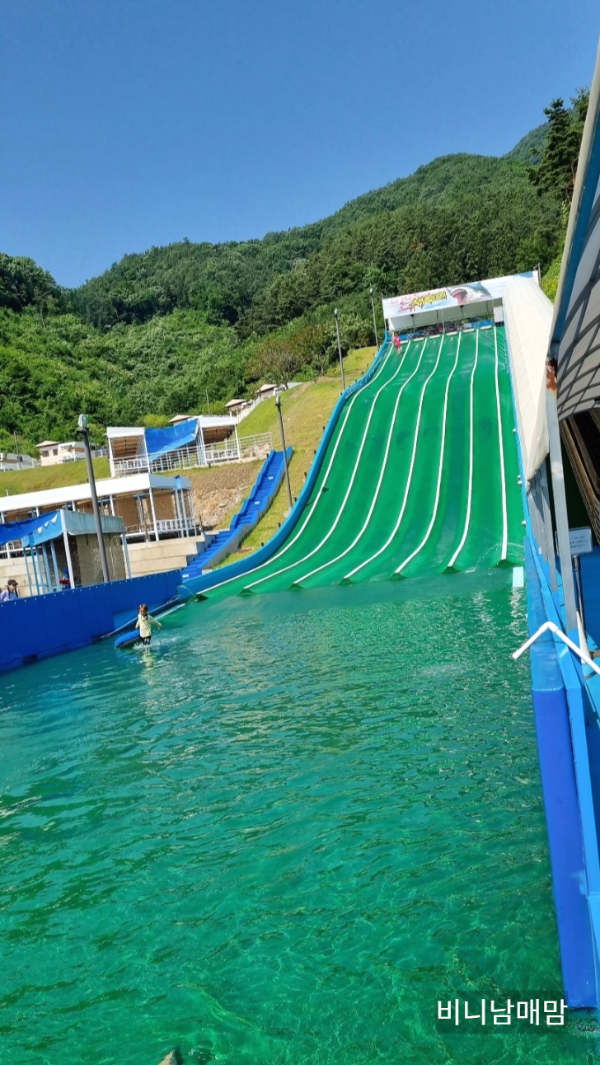 워터슬라이드입니다. 생각보다 길이도 길고 높았습니다. 신발을 신고 타면 신발이 날라간다고 하니, 꼭 벗고 타시길 바랍니다!! 여기는 인기가 많은 곳이니 입장하면 먼저 워터슬라이드를 타시길 추천드립니다. 사람이 많으면 기본 1시간은 기다리셔야 합니다. 현재는 4시에 마감하오니 그전에 줄 서서 타시길 바랍니다.