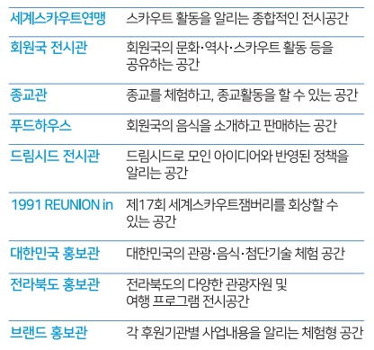 잼버리의 모든 전시프로그램은 삼각주 안에서 이뤄집니다. 일정은 8월 2일~11일(6일 제외)까지 펼쳐집니다.