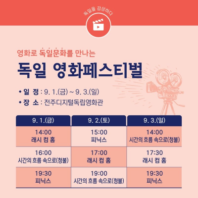 7. 독일영화페스티벌: 9월 1일(금)~3일(일) 전주디지털독립영화관에서 상영합니다.