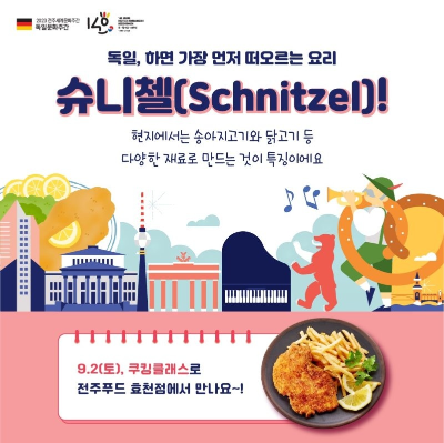 5. 슈니첼: 9월 2일(토) 쿠킹클래스로 전주푸드 효천점에서 진행합니다.