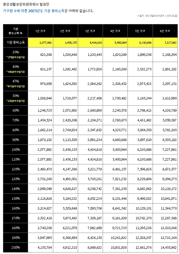 소득인정액이 기준 중위소득 100%이하인 자입니다. 국민기초생활보장법상 동일가구 기준 적용합니다. 소득은 공적자료 기준으로 조사하며, 공적자료로 소득 확인이 불가능한 경우 예외적용 합니다.