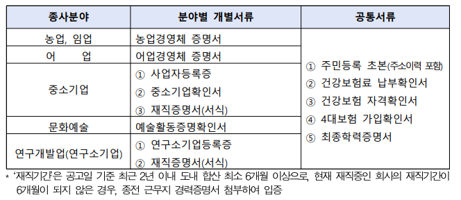 종사분야는 위의 지원대상을 확인하시기 바랍니다.
