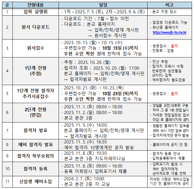 자세한 분들은 화산중학교 홈페이지 내 입학게시판 확인 가능합니다.